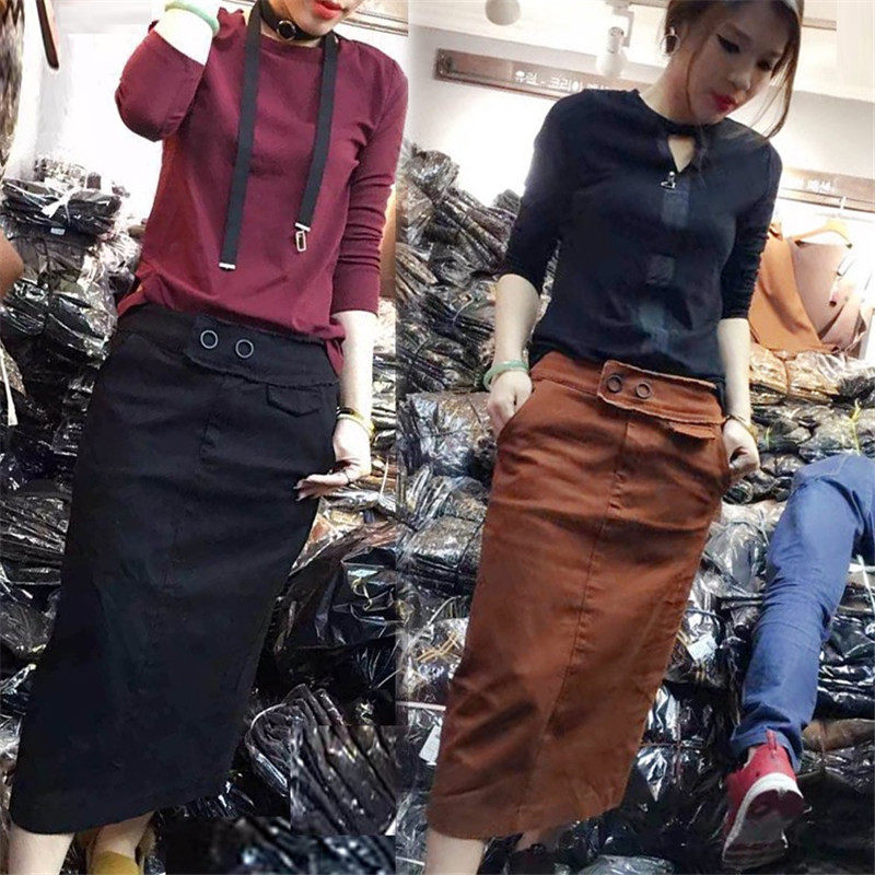 In spring 2023, new middle - long casual cowboy dress menace slim black hips