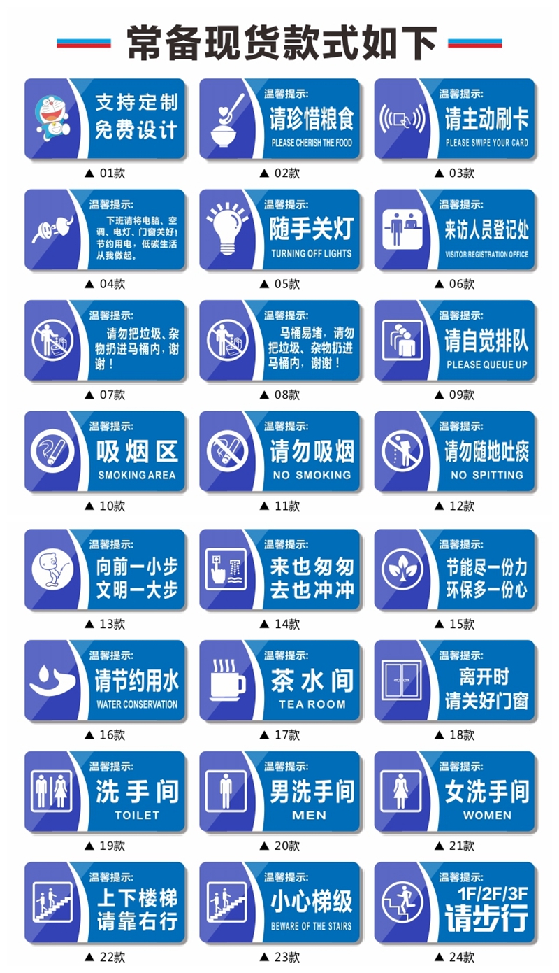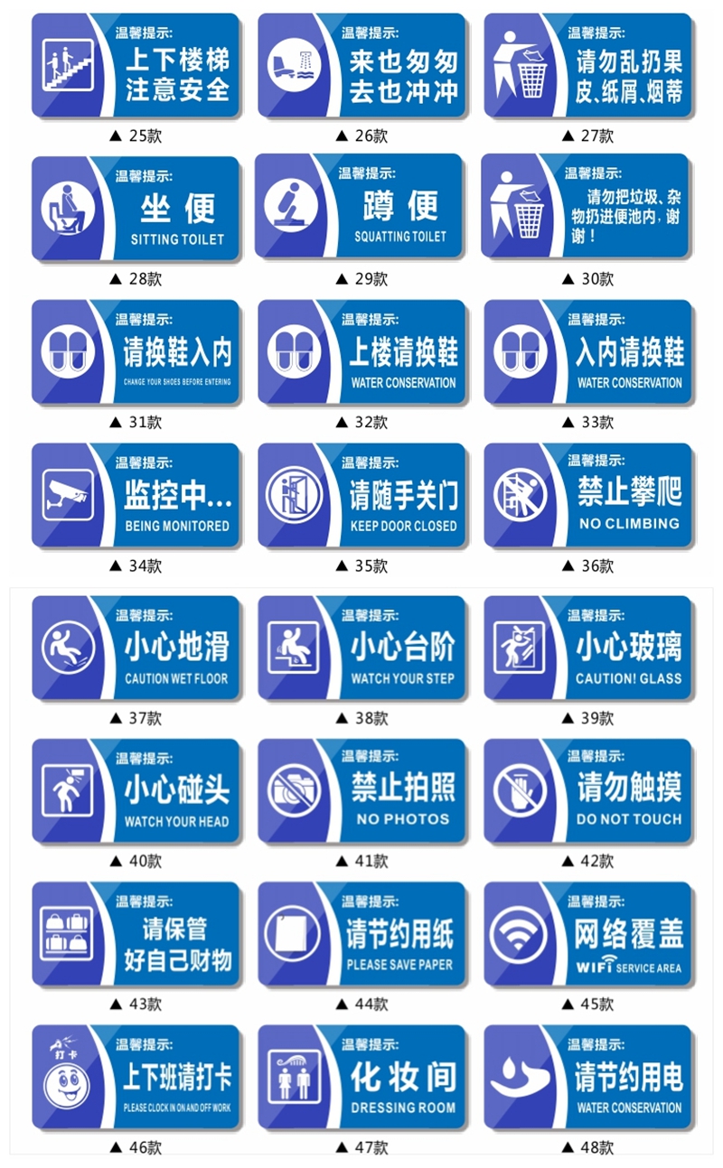 Acrylic blue comprehensive please save water sign hand wash dressing room keep clean hand wash sign