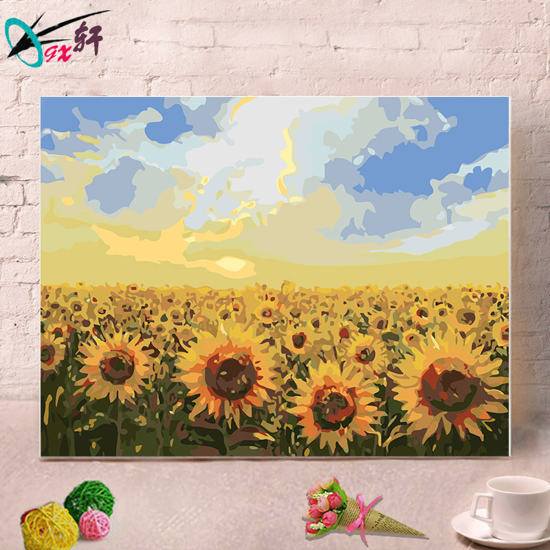 Oil Color Painting Decompression Handmade Diy Digital Oil Painting Landscape Nordic small filling color painting Living room Painting Sunflower