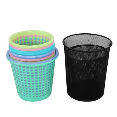 Thickened anti-rust wire trash can Household Office waste paper basket powder room bedroom without lid plastic trash can