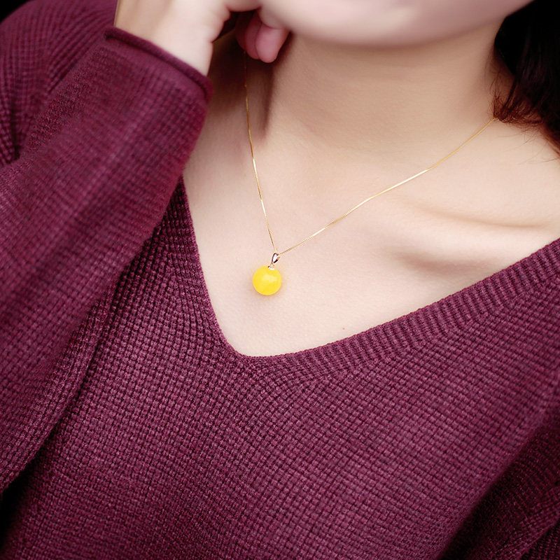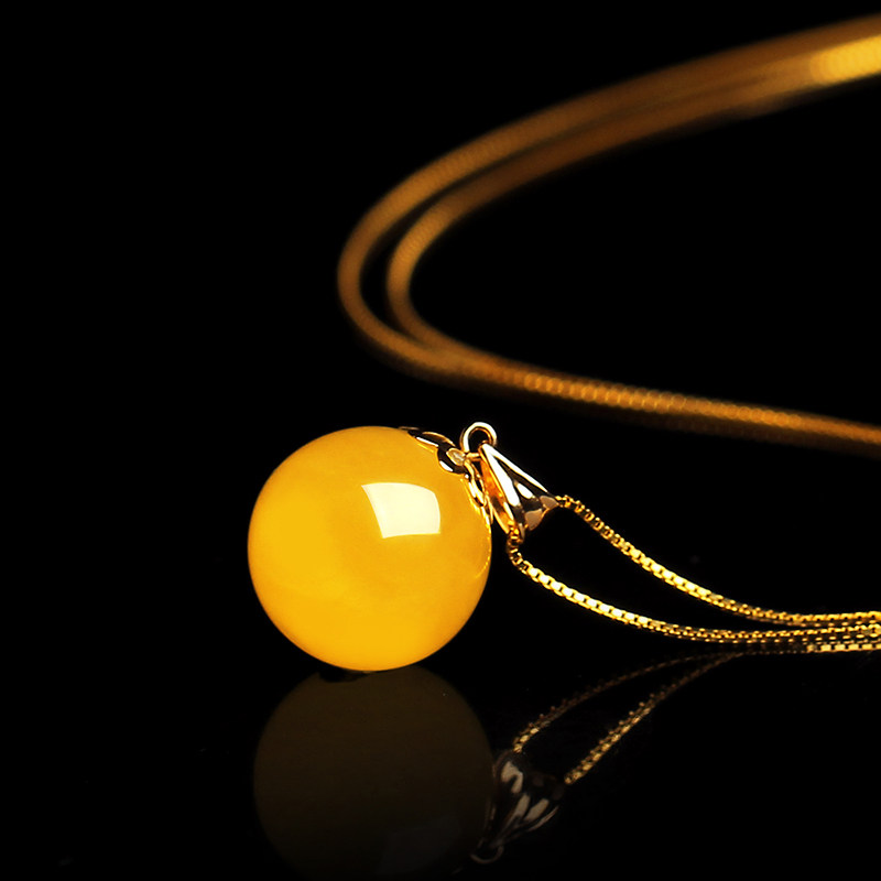 Xiang Zheng Fu Natural Honey Wax Pearl Female Amber Chicken Old Honey - Wax Necklace 18 K Gold Closed Ball