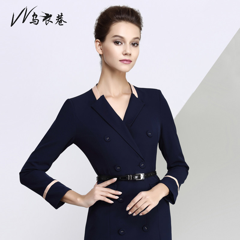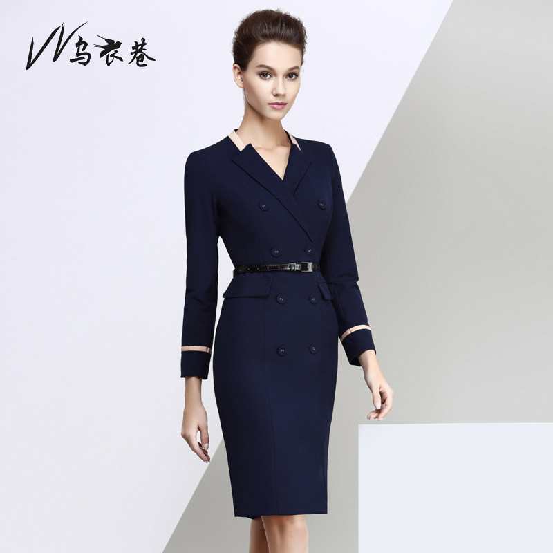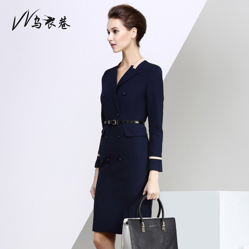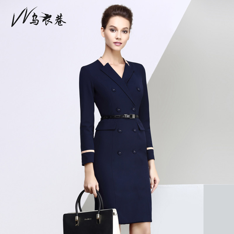 UEthiopian Alley Autumn Winter Long Sleeve Career Foreign Clothing Sales workwear Body Temperament OL Women's dress Double row of buttoned frock dress