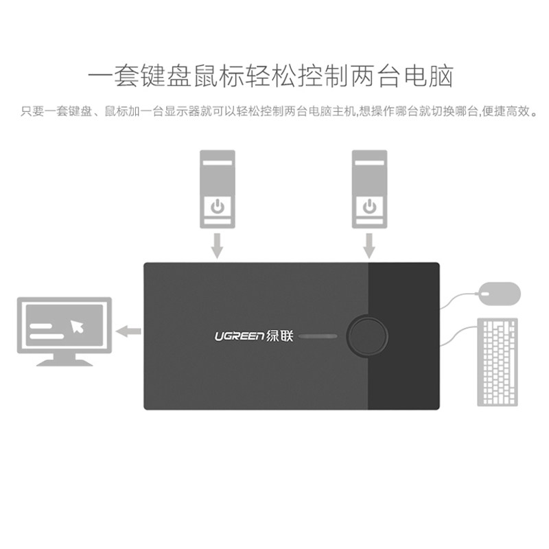 Green Union 30357 KVM switcher two-in-computer cut-screen share display slip mouse keyboard 2-mouth usb