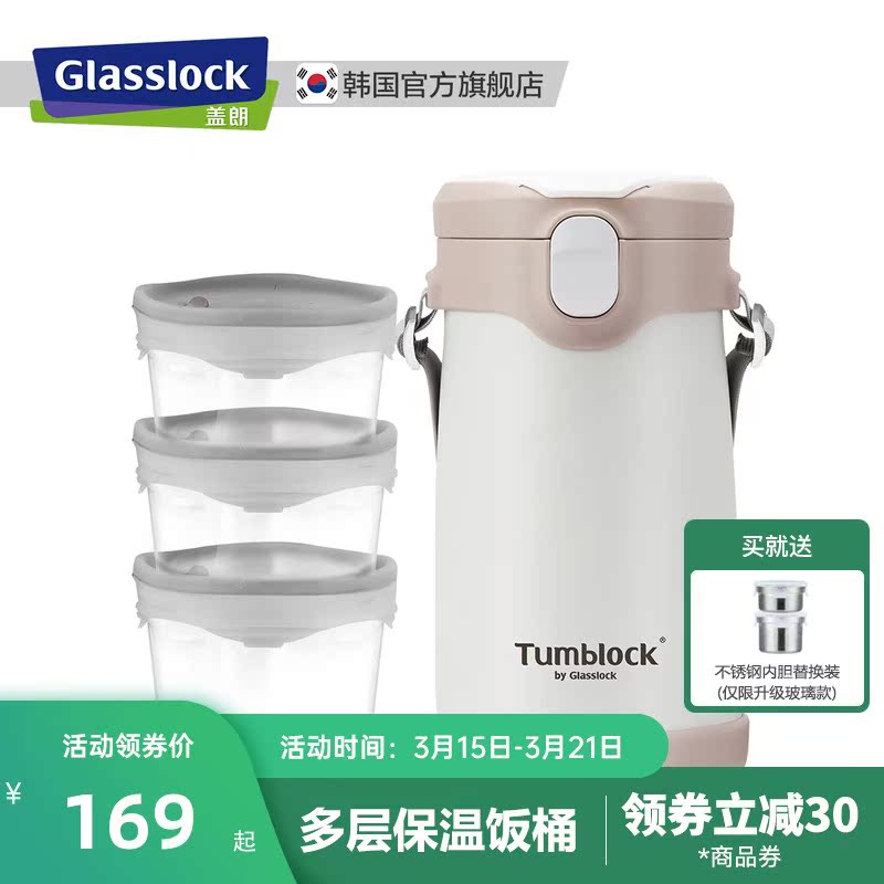 Glaslock Korea Glass Insulated Lunch Box 2 3 Layers Stainless Steel Insulated Barrel Microwave Oven Heated Lunch Box