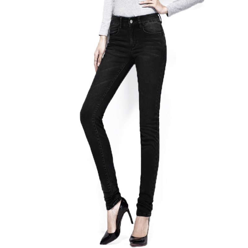 Spring and autumn thick fabric tall lengthened denim jeans dark women's pants stretch overlong small feet tight fit long pants black