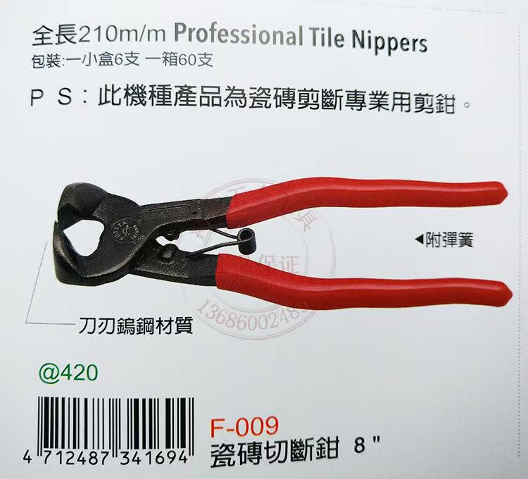 Taiwan Fugua F-009 tungsten steel super hard tile cutting pliers 8 inch top cutting pliers Tile cutting pliers