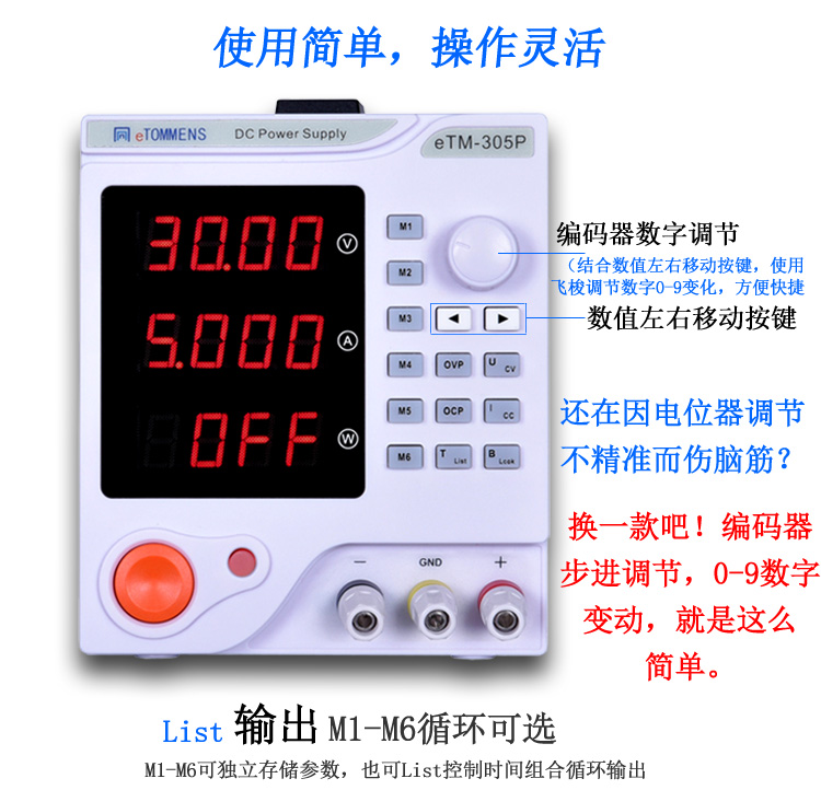Tongmen eTM-3010F high precision DC power supply 605F four-position switch 1003F regulated current regulated adjustable output