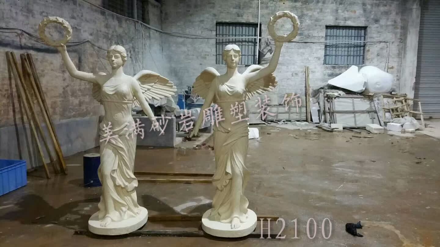 Beautiful sand rock sculpture winged angel figure Fiberglass artificial sand rock Garden landscape Four seasons goddess