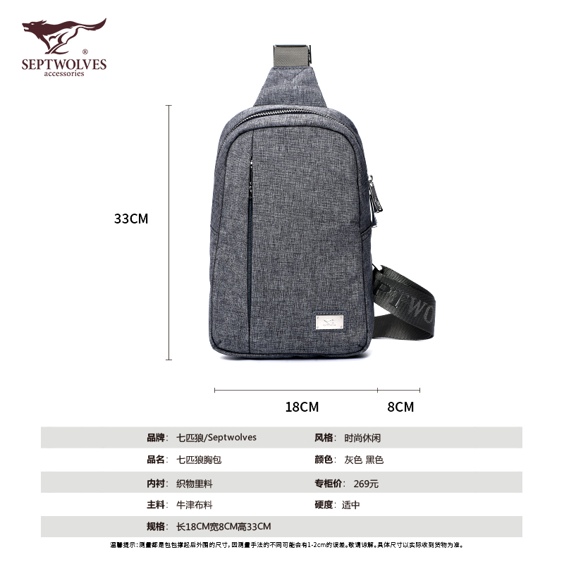 Septwolves chest bag men's messenger backpack shoulder bag Oxford cloth casual men's bag men's bag canvas bag