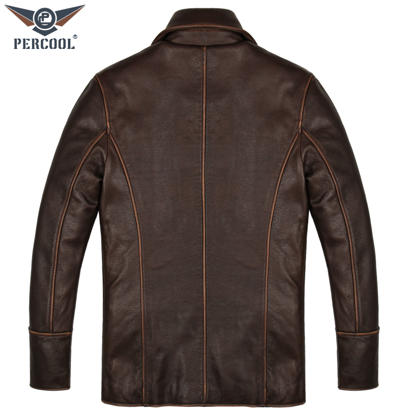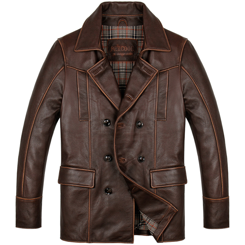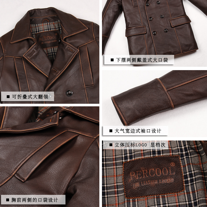 Autumn and winter leather windbreaker men's long version of genuine leather leather imported first layer pure cowhide leather jacket double breasted thick leather jacket