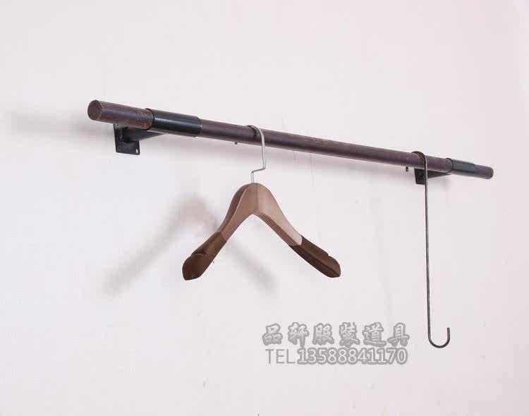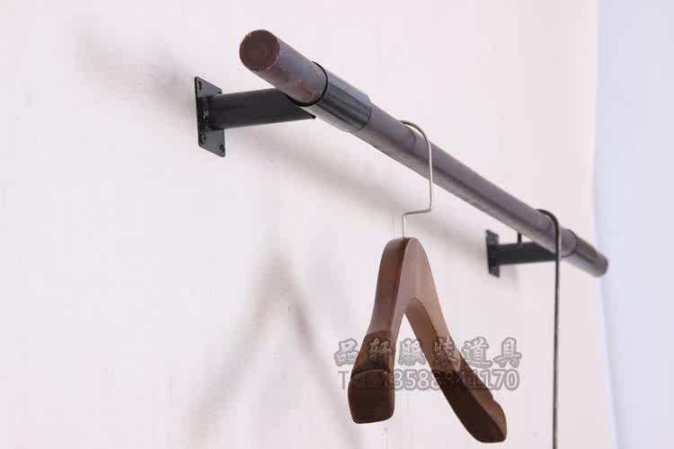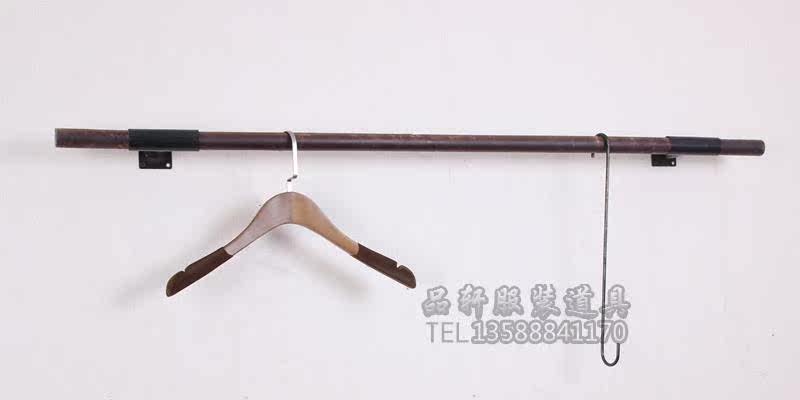 Clothing Store Furnishing Shelving Solid Wood Positive Hanging Dark Wood Stick Single Pole Woman Fit Retro Clothes Hanger Wall-mounted Clothes Hanger