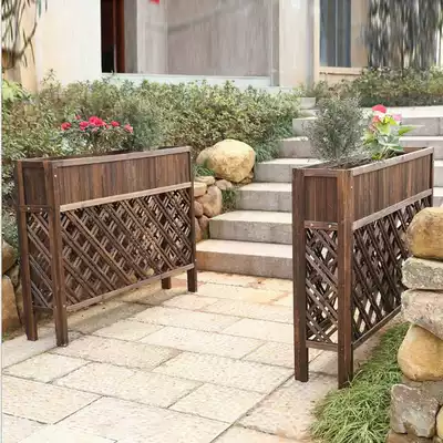 Outdoor balcony anti-corrosion wooden flower stand flower box partition flower slot planting box hotel I grid wooden fence flower pot stand