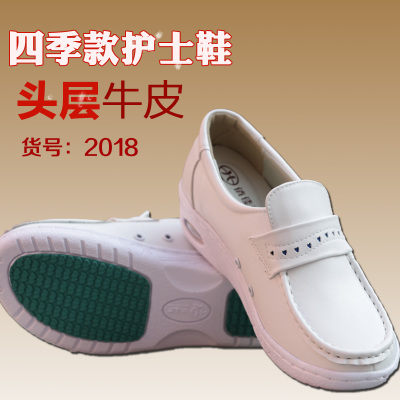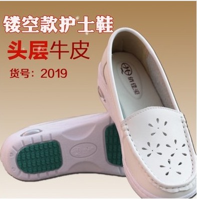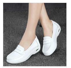 Nightingale leather nurse shoes flat wedge with breathable shallow mouth thick bottom pregnant women beautician work shoes small white shoes