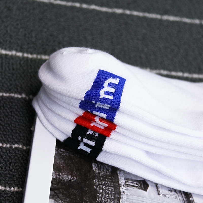 Men's combed cotton cotton socks sole letter box tide white socks control personality thin section shallow mouth comfortable and cute