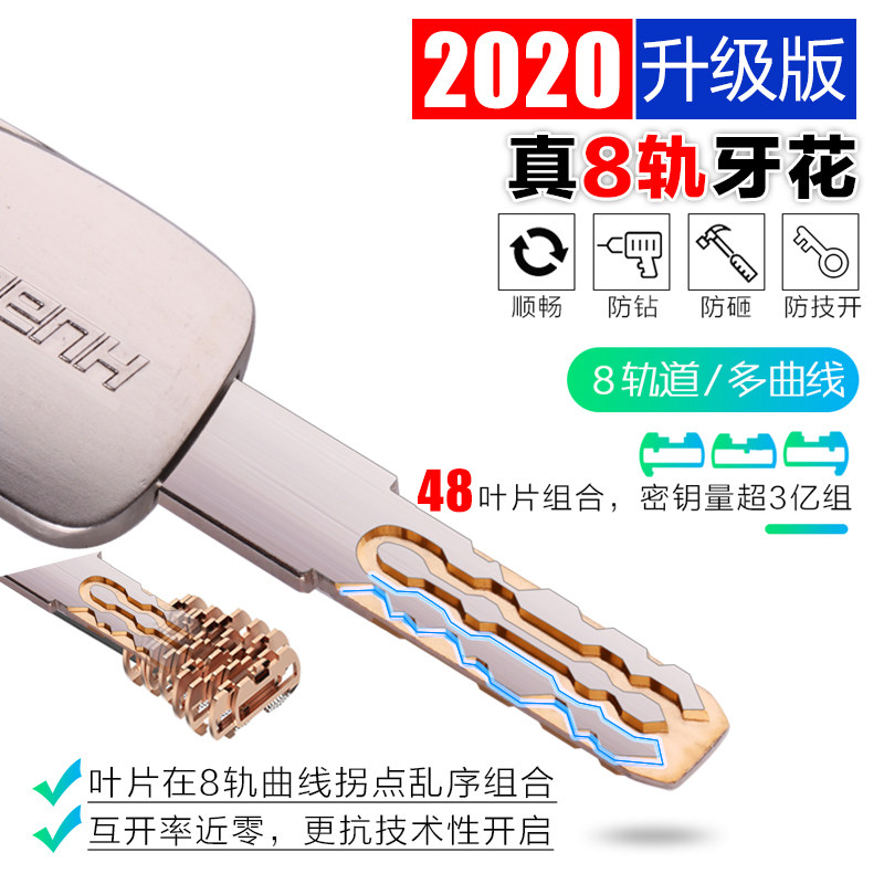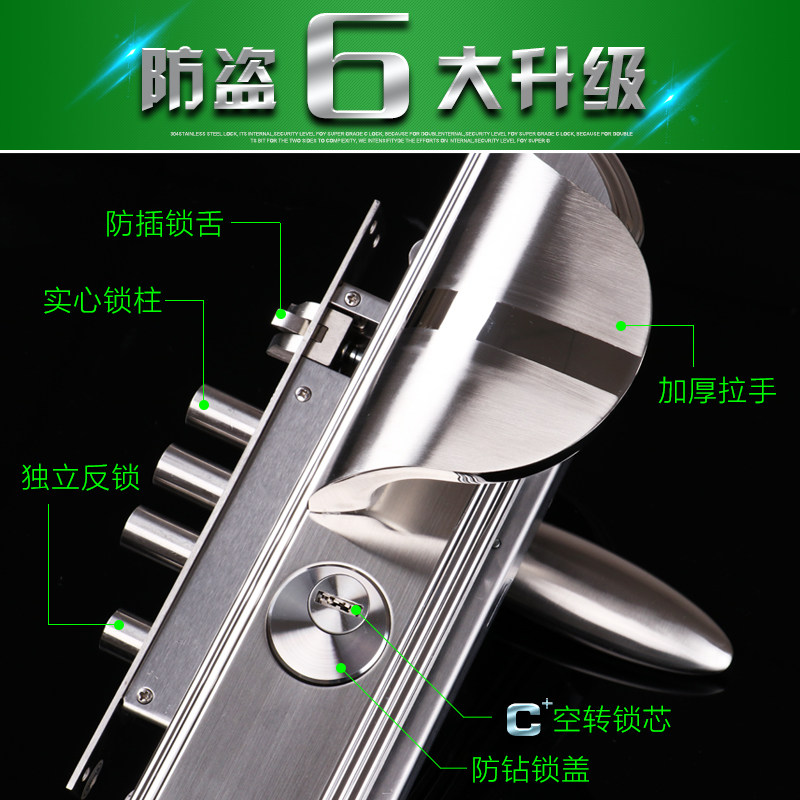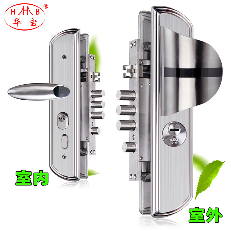 Huabao door lock 304 stainless steel anti-theft door lock three-piece set thickened anti-theft door lock set 8 track lock core