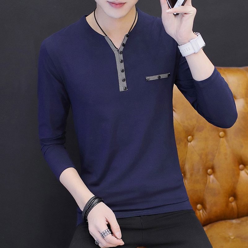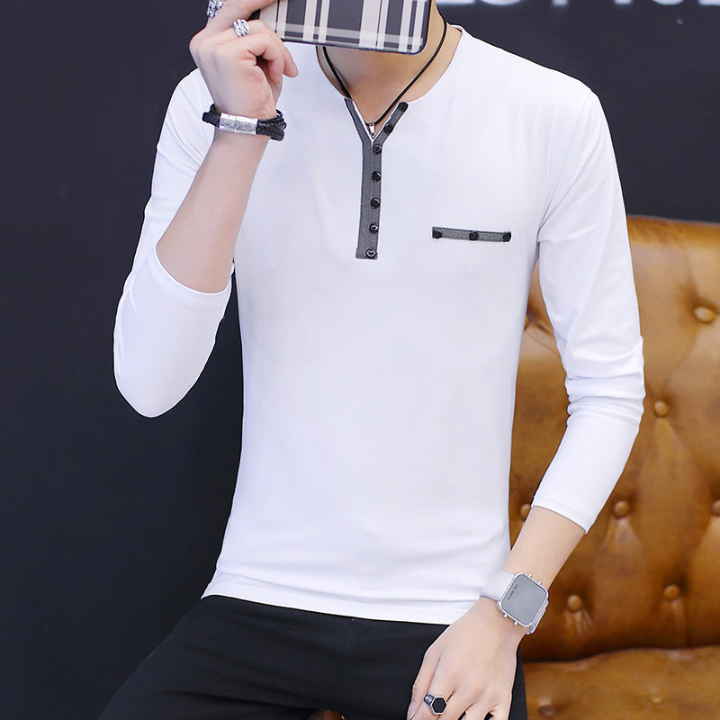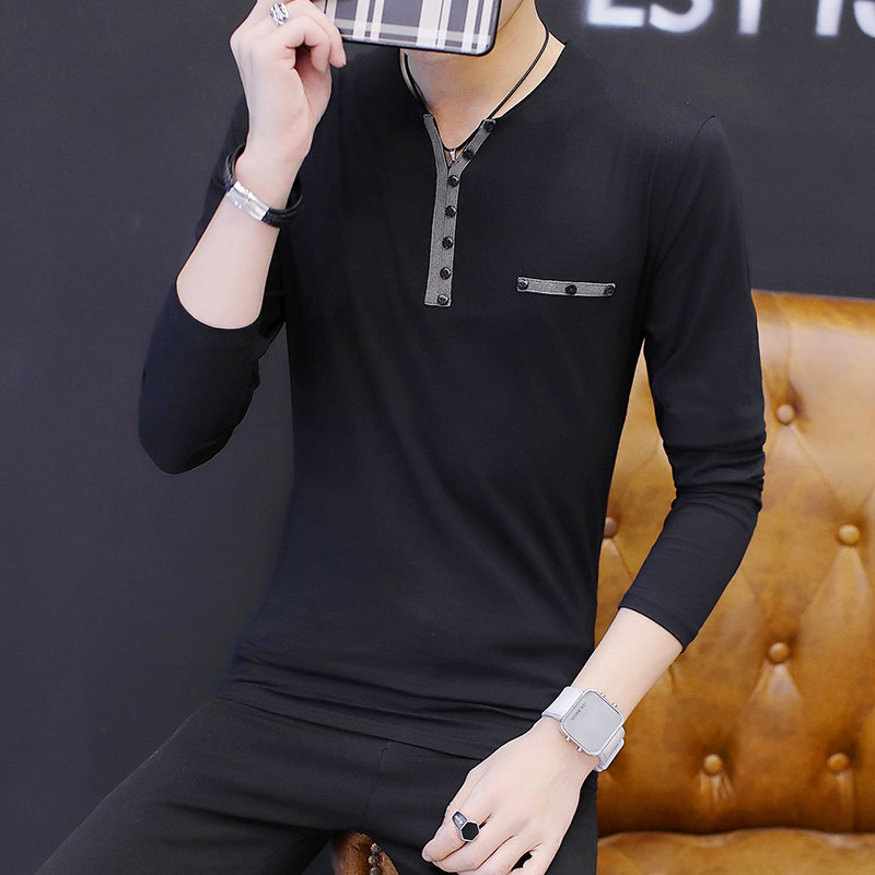 Men's T-shirt Long sleeves Fall trendy Korean version V neckline Tide Card Spring Loaded Clothing Little Shirt T body hitch in body