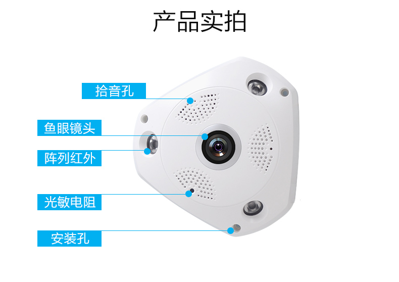 360 degrees talkback panoramic wifi wireless camera phone remote 3D stereo wide angle VR night vision fish eye 1.3 million