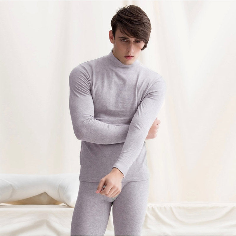 Men's thin velvet fever clothes for the elderly thin velvet fever pants High collar base velvet underwear black