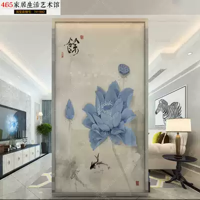 Screen partition living room Chinese Lotus mix and match European American Sandwich Glass
