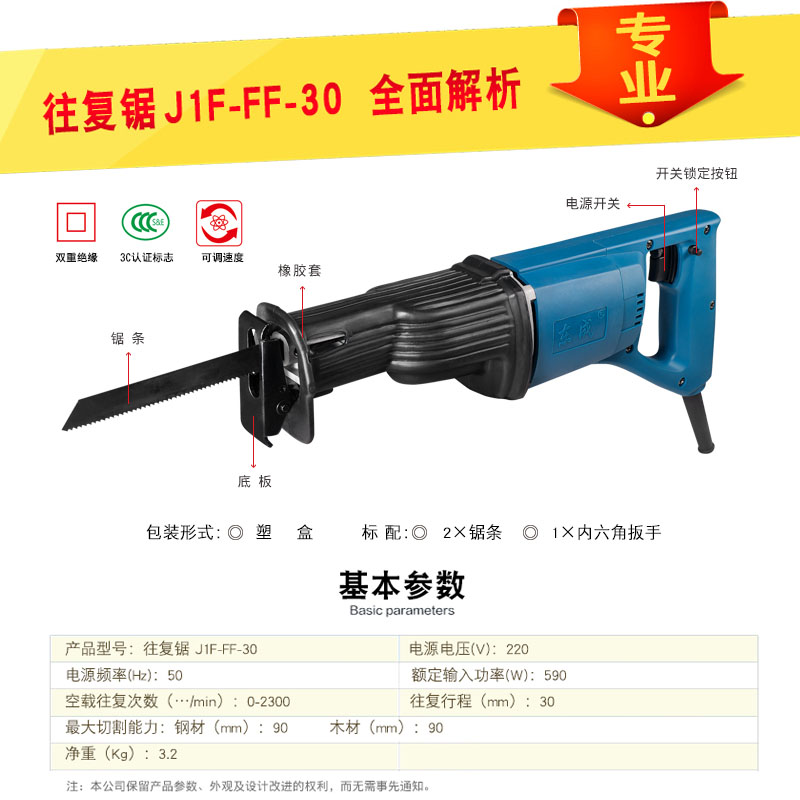 Dongcheng reciprocating saw J1F-FF-30 saber saw woodworking saw metal saw speed control portable saw chainsaw power tools
