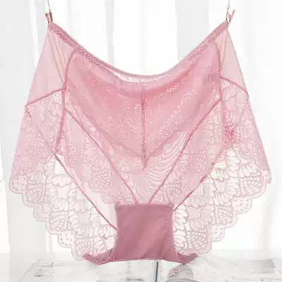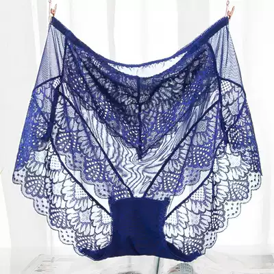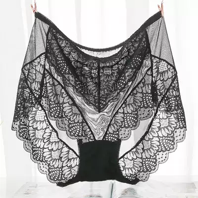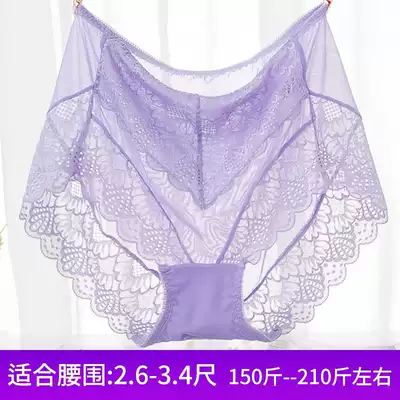 4 packs of large size women's panties fat mm200 kg sexy ice screen yarn high waist lace full transparent hot temptation