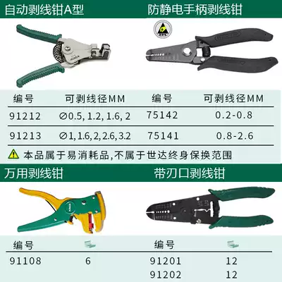 91201 6-inch wire stripping pliers 91202 7-inch strip stripping pliers 91108 6 5-inch universal wire stripper 75141 anti-static handle