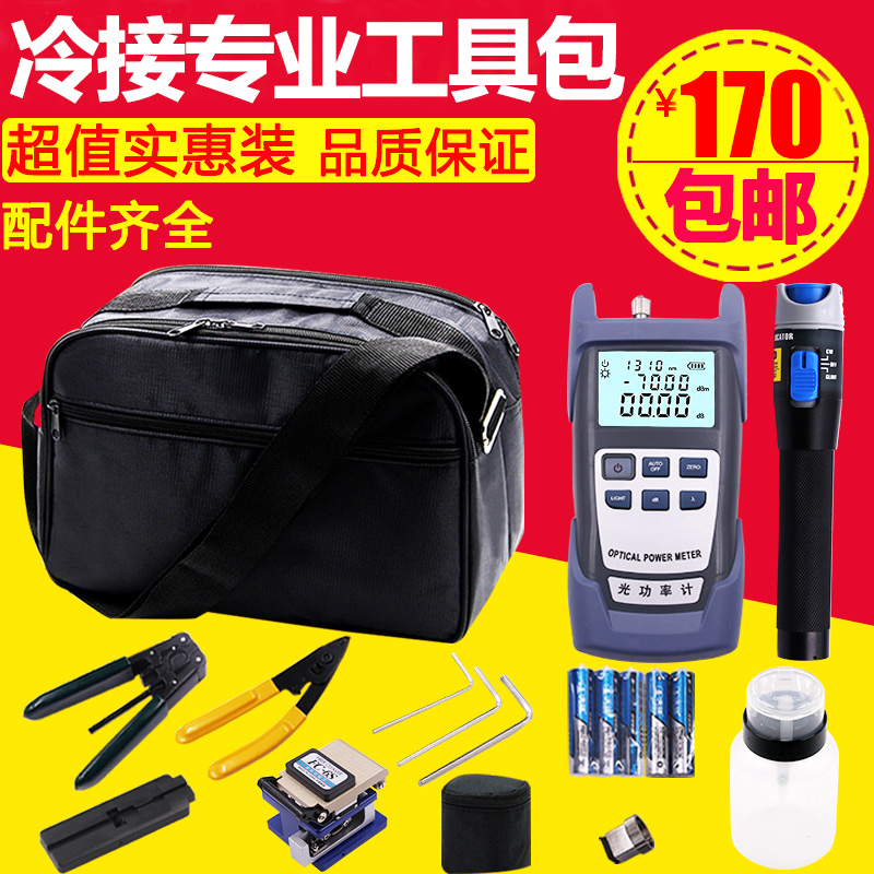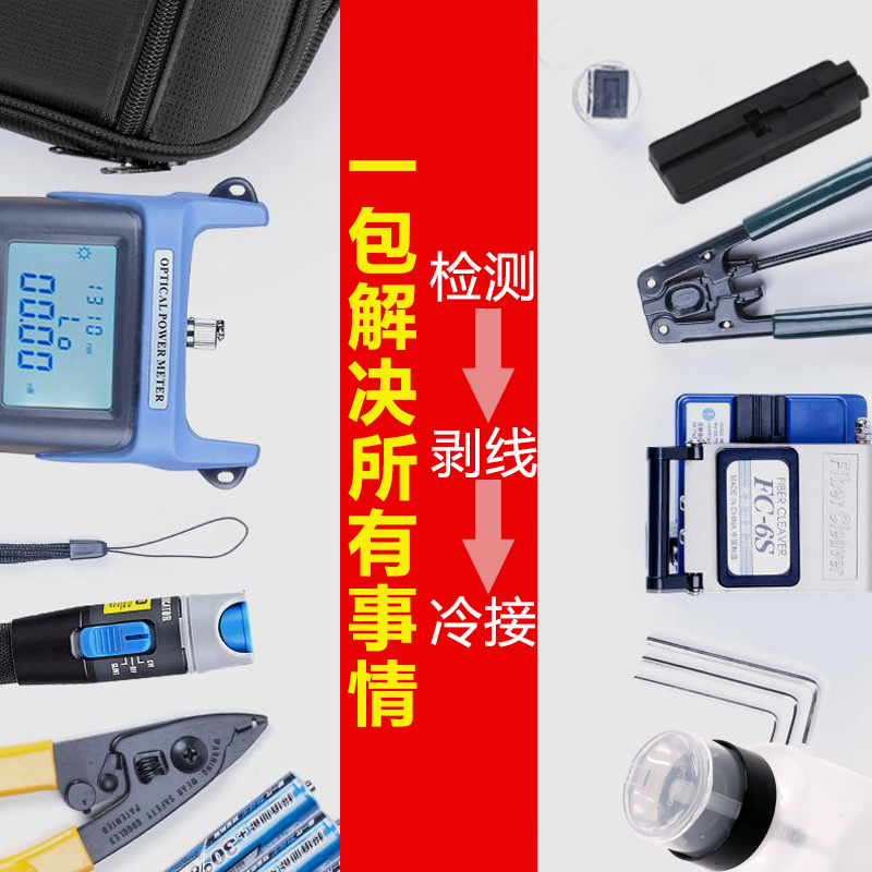 Fiber Cold Access Tool Suit Leather Line Optical Cable Optical Power Meter Red Light Pen Exfoliating Pliers Cutting Knife Tool Bag Box Light Power Gauge With Geodetic Route AllFTTH Fiber Cold Pick Up Kit
