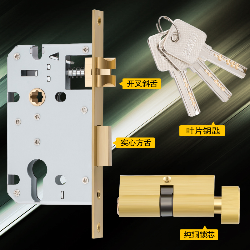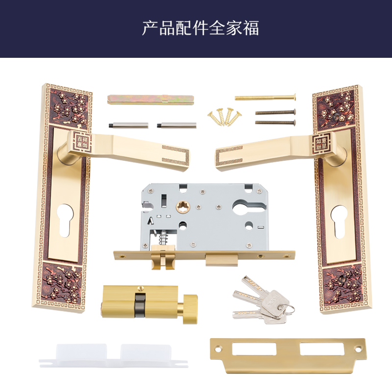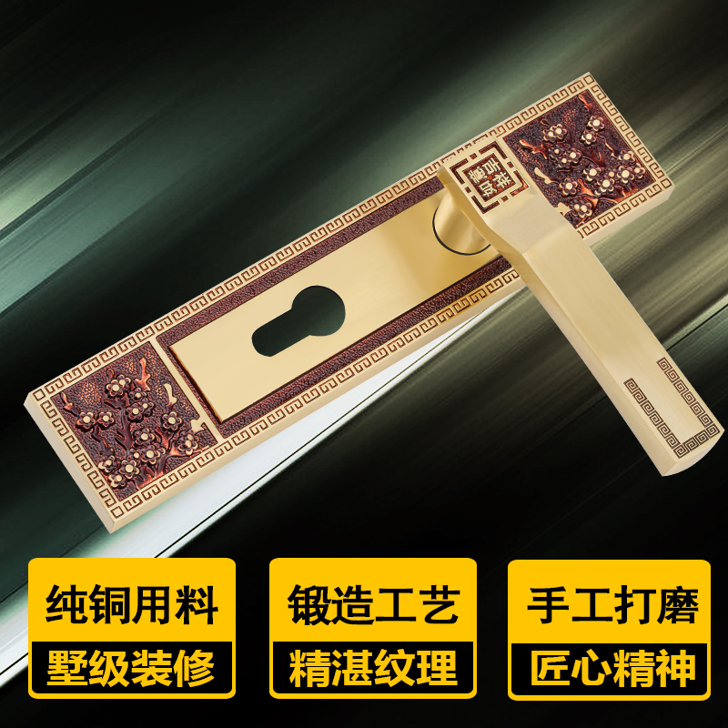 (RYNX Ling Shi)Copper door lock Pure copper door lock Solid wood door lock Villa bedroom door lock