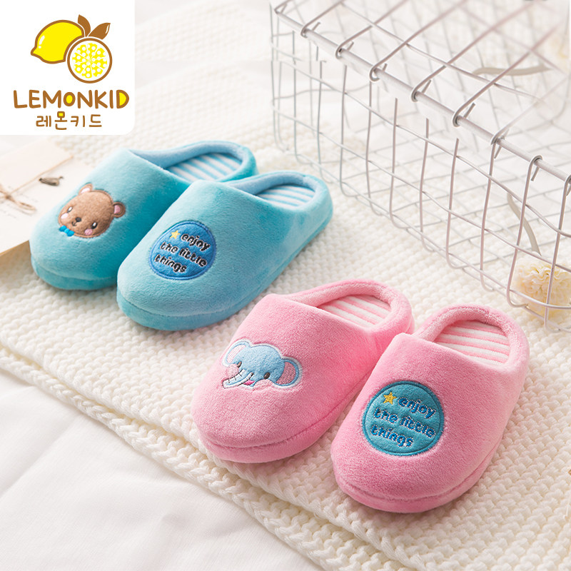 Children's cotton slippers autumn boys and girls soft soles anti-skating winter indoor shoes lovely thicker cotton slippers girls