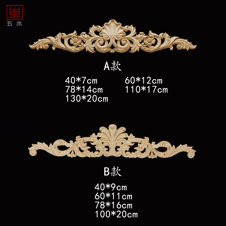 European-style solid wood applique long flower piece furniture decoration applique wood flower wood carving Dongyang wood carving background wall decoration