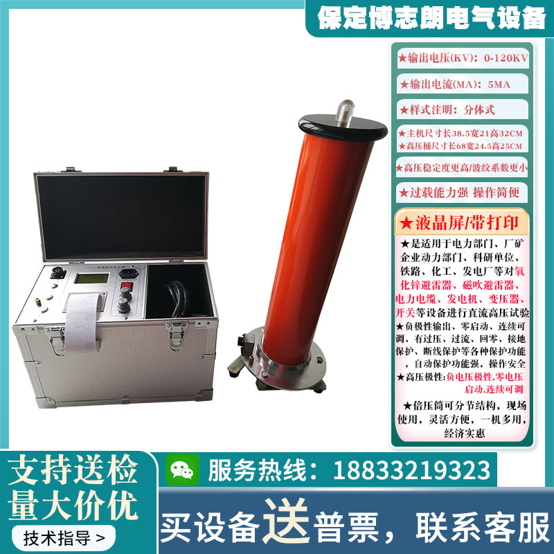 DC high voltage generator 120kv2mA straight high hair zinc oxide arrestor DC cable pressure resistant test qualification