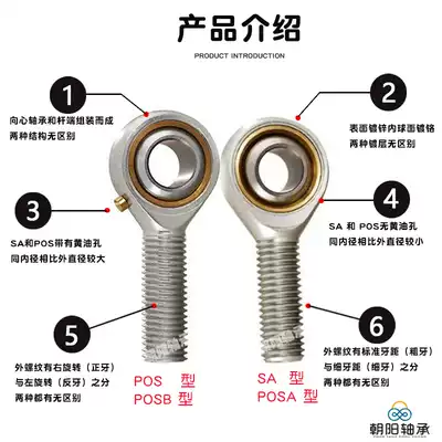 SA POSA external thread fisheye joint rod end radial joint bearing inner diameter 4 5 6 8 10 12 14