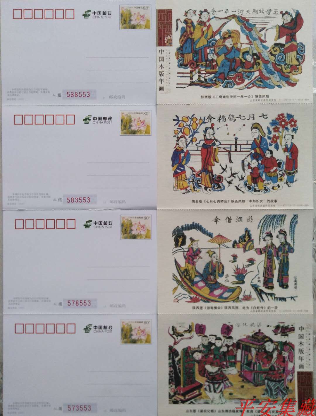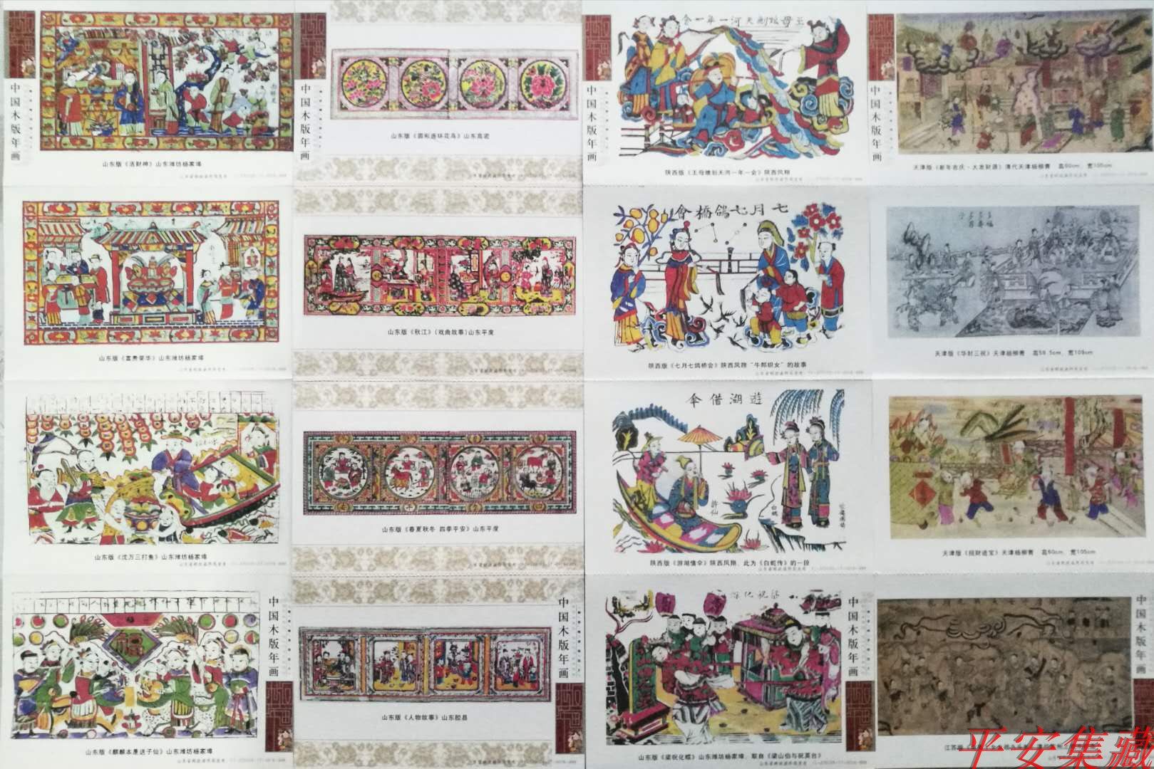 Chinese wooden board New Year Painting Postage postcard 64 large sets of rice paper cards printed exquisitely 80 points national mail