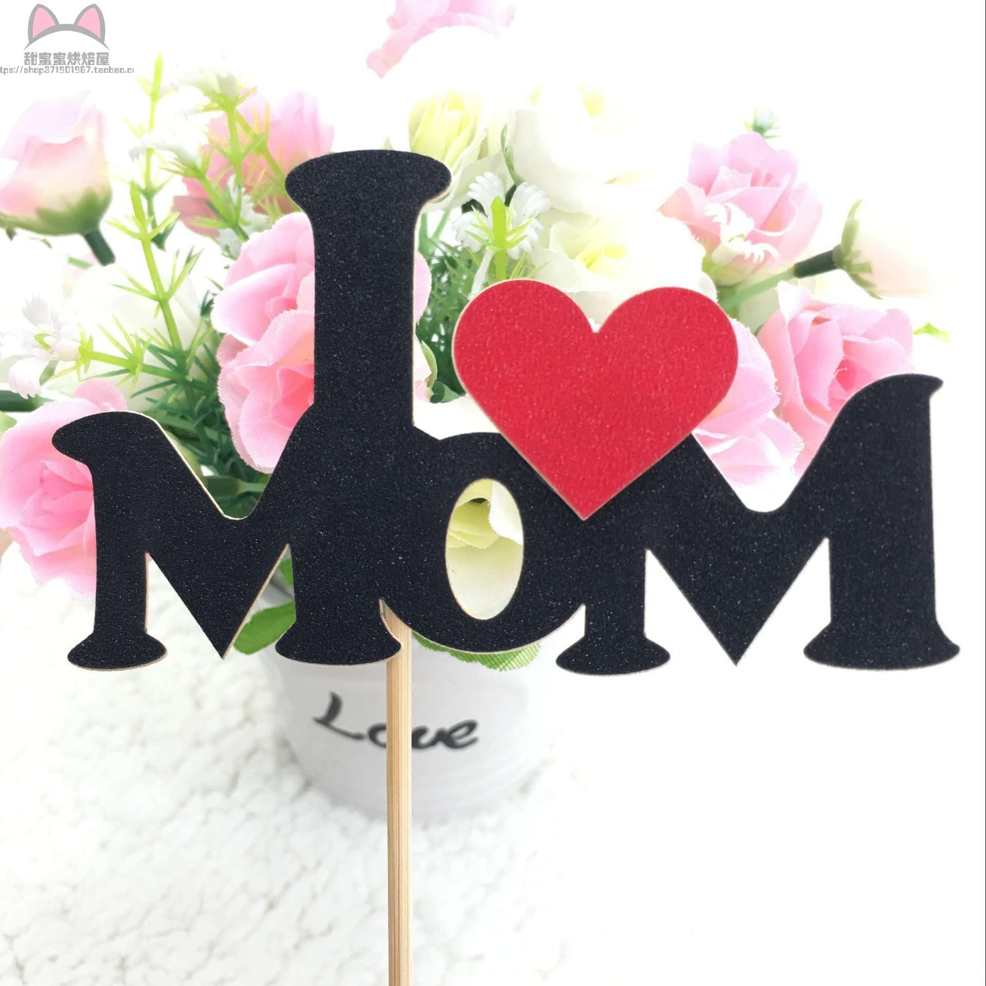 Birthday Cake Decoration Inserted Flags Love Daddy Love Mom Love You Babycake Decoration Jack Stick Inserts Black