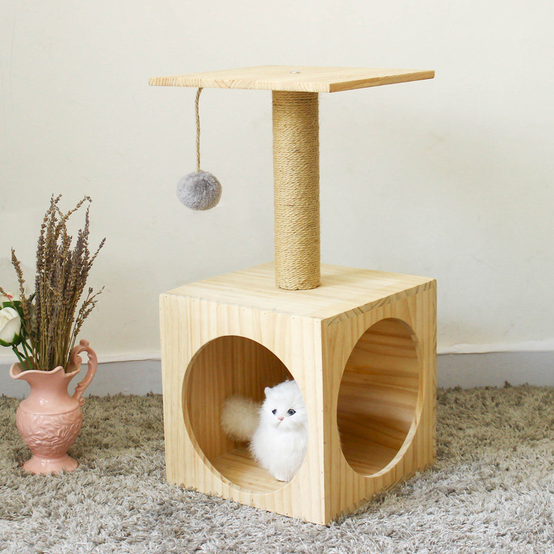 Small cat climbing frame Solid wood cat nest Mini sisal platform cat grab post Convenient cat toys Pet supplies