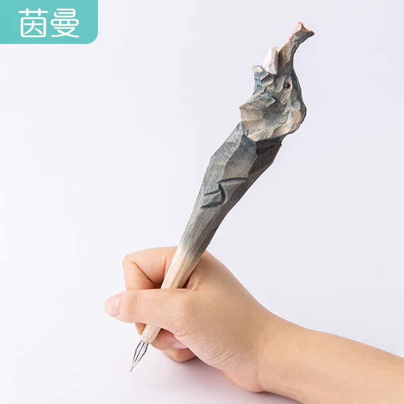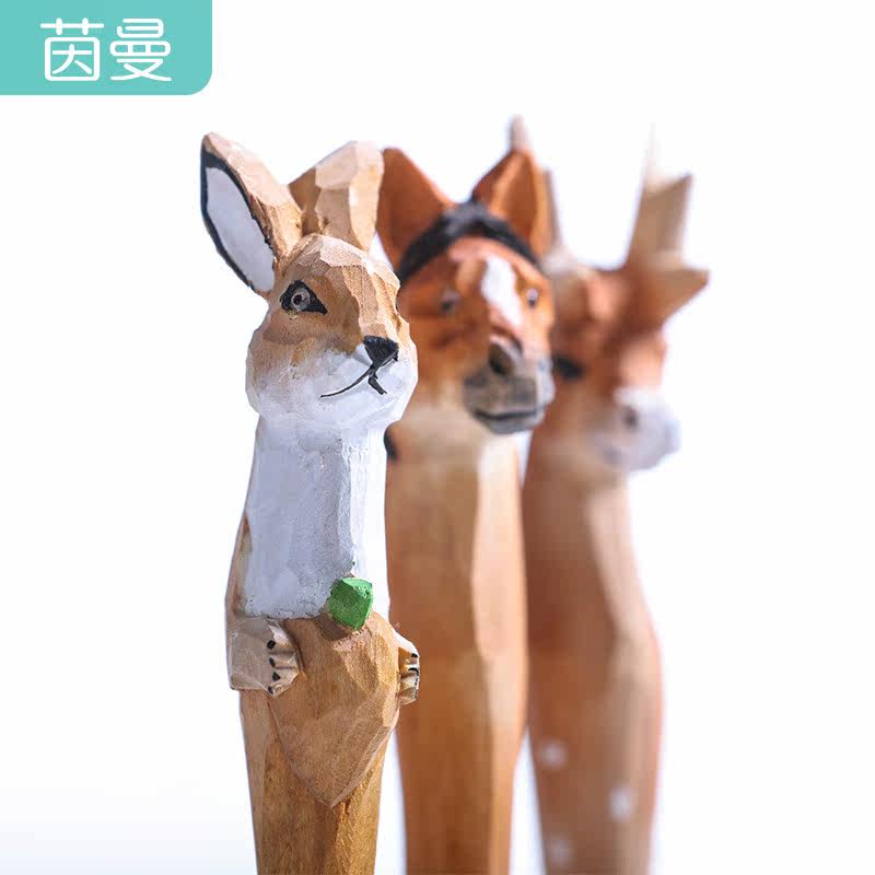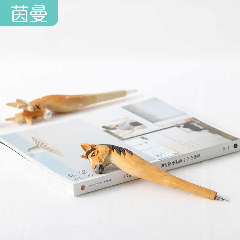 Home simple and lovely handmade stationery solid wood carving animal creative literary wood carving pen