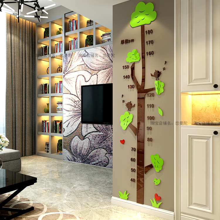 Large Tree Height Sticker 3d Solid Wall Sticker Self-Glued Baby Children Amount Height Ruler Wall Sticker Kindergarten Cartoon Decoration