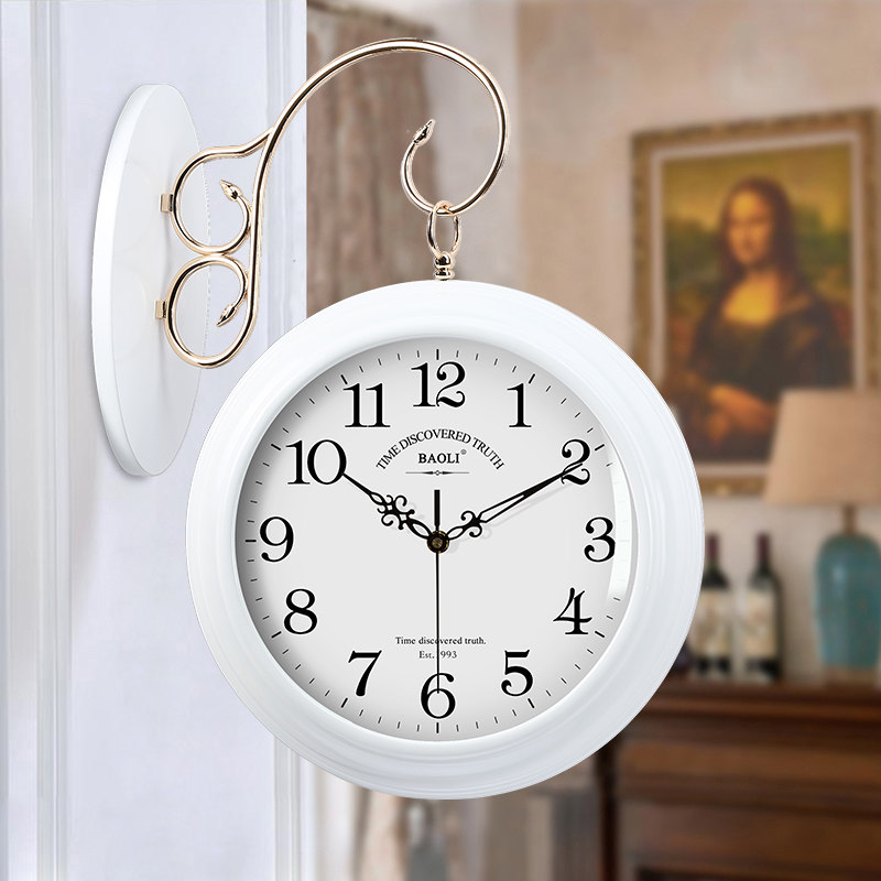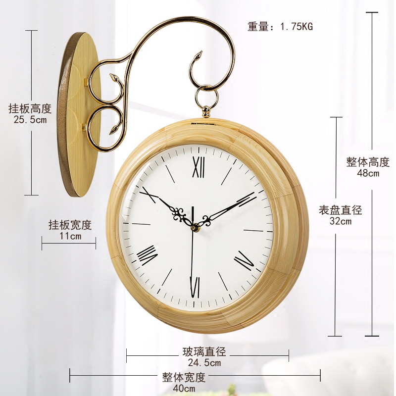 Polaroid solid wood clock double-sided wall clock living room home Nordic modern simple creative fashion two-sided side wall watch