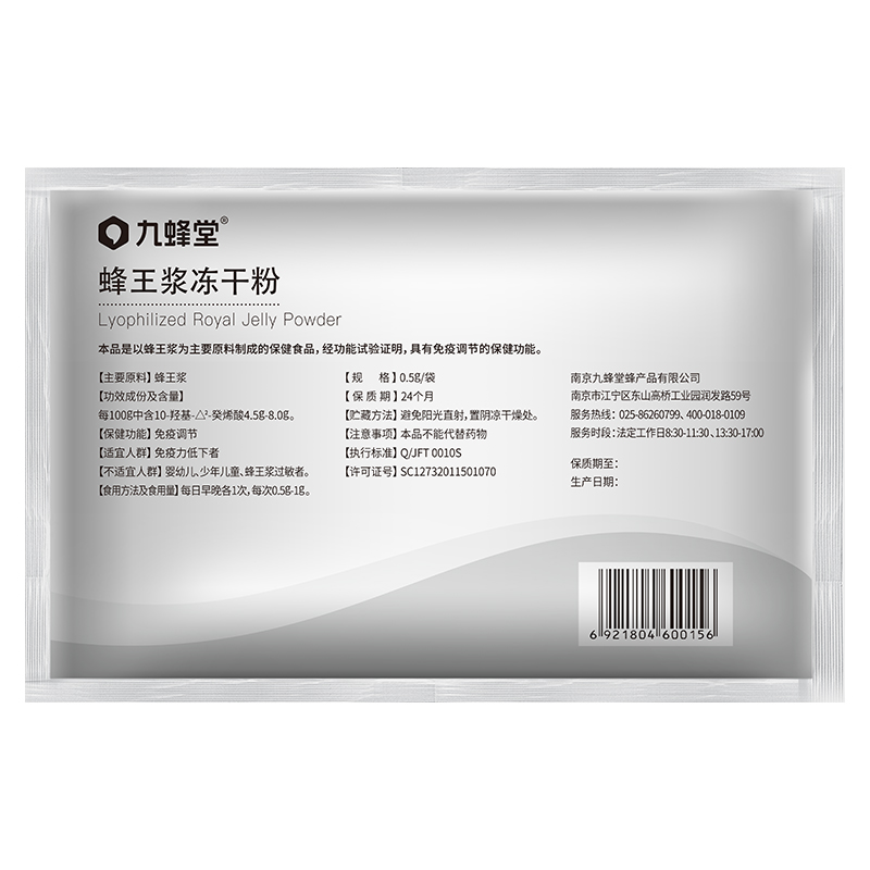 Jiufangtang royal jelly freeze-dried powder 0 5g bag * 100 bags immunoregulatory royal jelly acid 5 14 Qinghai spring pulp