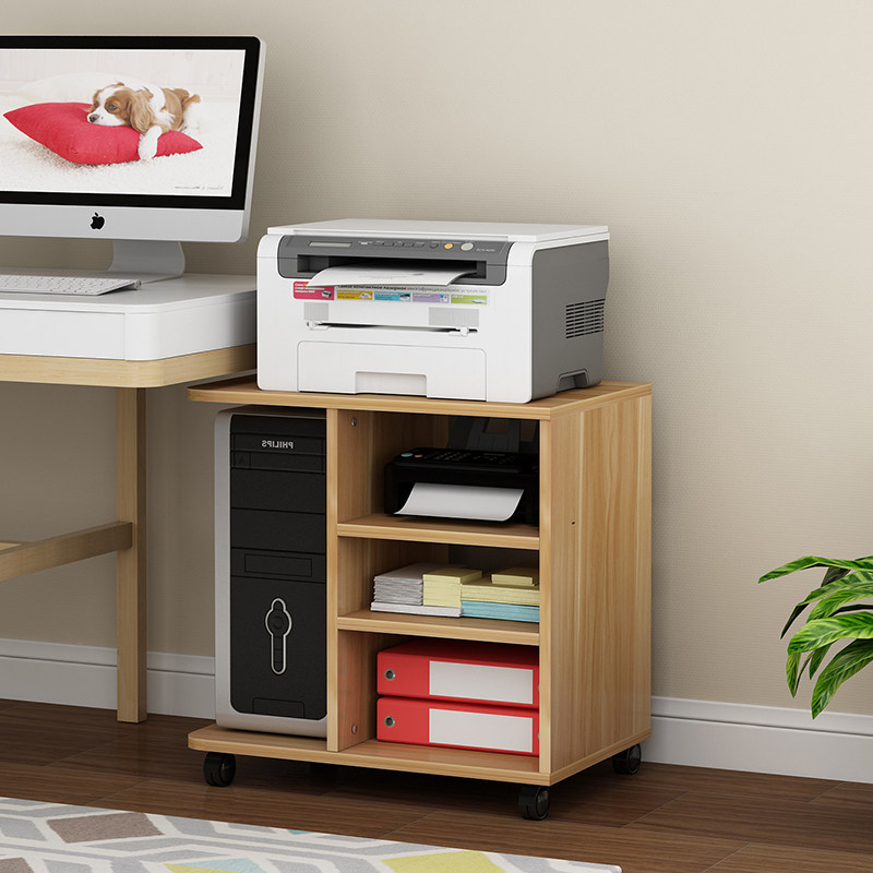 Printer shelf multi-layer storage rack office rack wooden floor mobile host cabinet rack table side cabinet customization