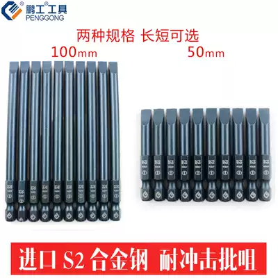 One word electric pneumatic screwdriver head S2 hair blue ribbon magnetic hard screwdriver flat head pneumatic tool batch nozzle 50 100mm
