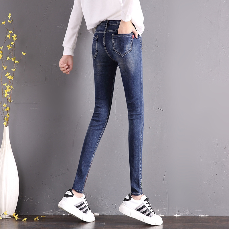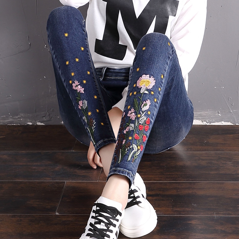 High-waisted jeans women's 2021 new spring and autumn national style stretch embroidery design sense smoke pipe pants pencil pants
