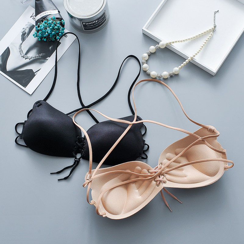 Summer sexy strap bra women base beautiful back underwear no steel ring gathered ladies bra wrap breast strapless thin