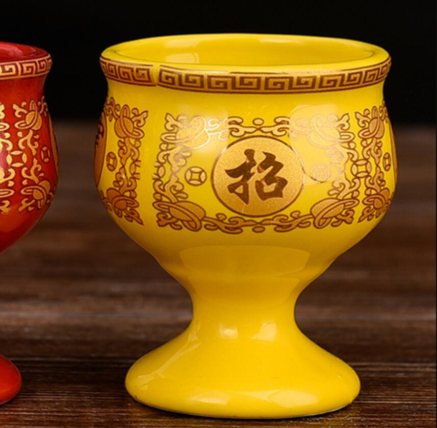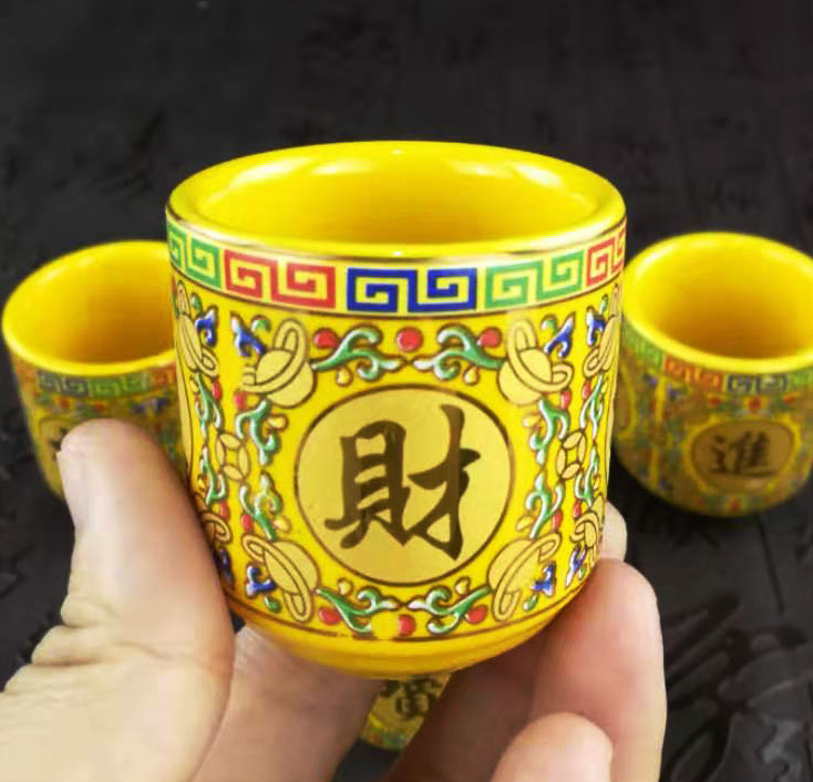 A golden sand cup (to attract wealth and treasure) 4 5*5CM A wordless lotus cup--4 5*4 5CM big red cup (to attract wealth and treasure)--4 5*4 5CM sand gold jug