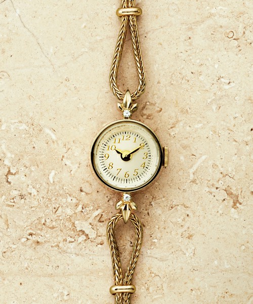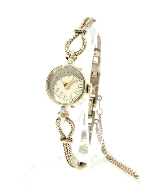 Japan Straight Sends Agete CLASSIC 10k Elegant Ladies Leaves Diamond Round Meter Disc Watches