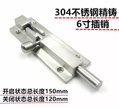 Thickened 304 stainless steel solid cast latch lock 6 inch anti-theft door bolt buckle lock door buckle door open latch