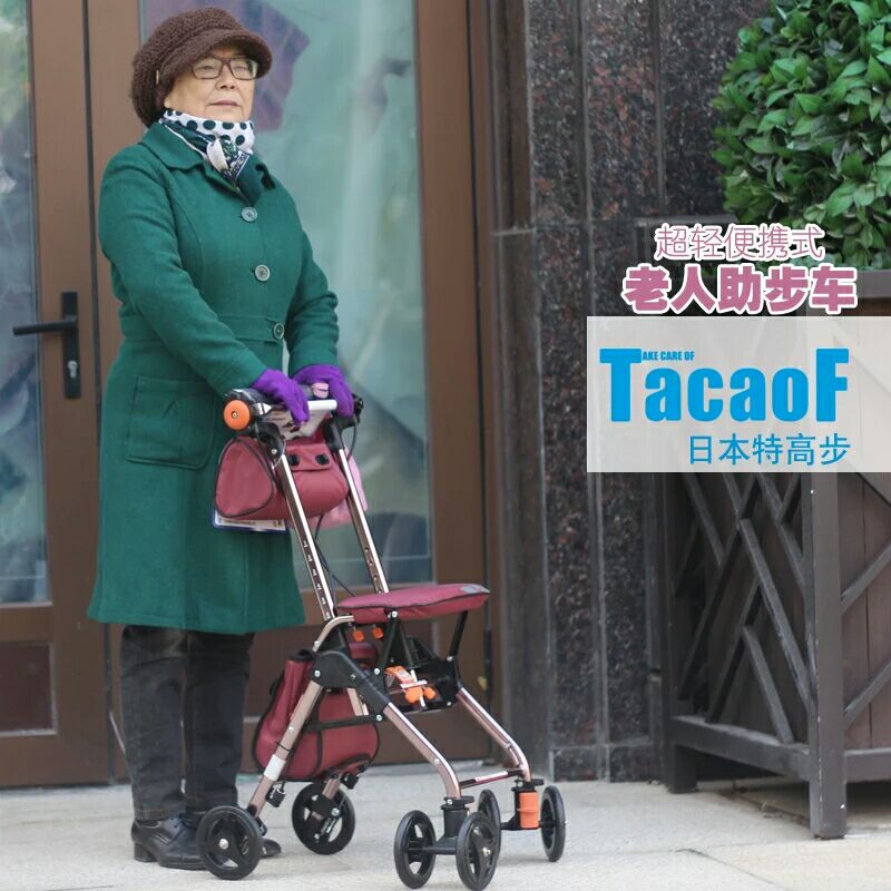 Japan's Tacaof ultra-high-step elderly walker can sit ultra-light portable lightweight elderly walker trolley