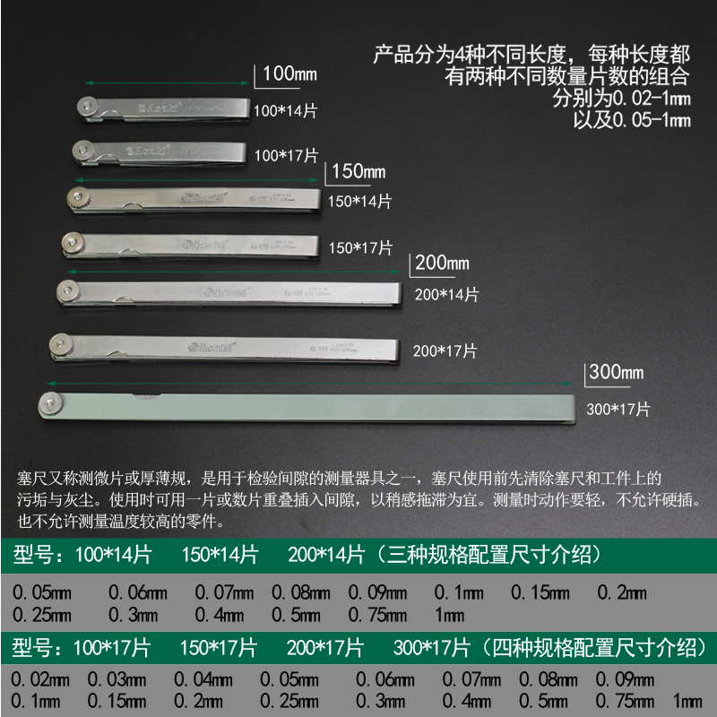 100mm*14 pieces(0 05mm-1 0mm)100mm*17 pieces(0 02mm-1 0mm)150mm*14 pieces(0 05
