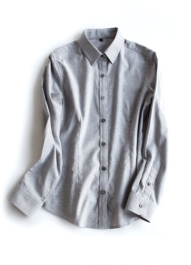 OFFIY-Grey Thickened Cotton Advanced Professional Dress Oxford Long Sleeve Shirt