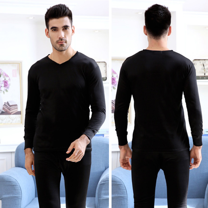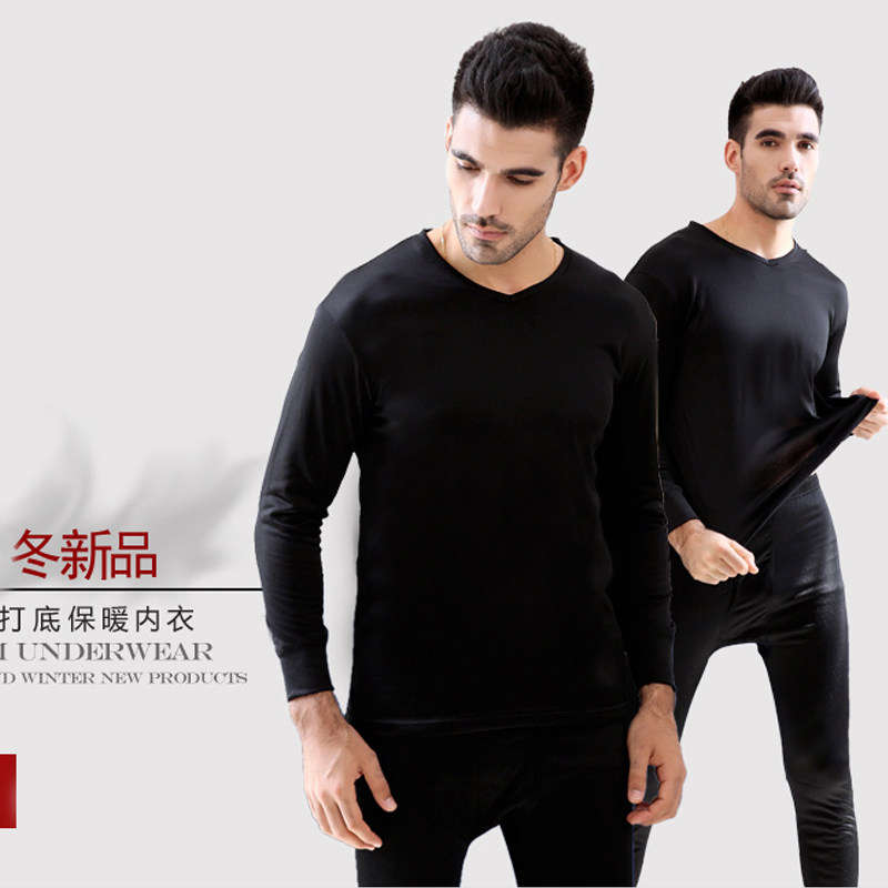 Men's thin plus-fed V-haired heat fiber thin tufts sanitary pants heating dress middle-aged dad dressed black